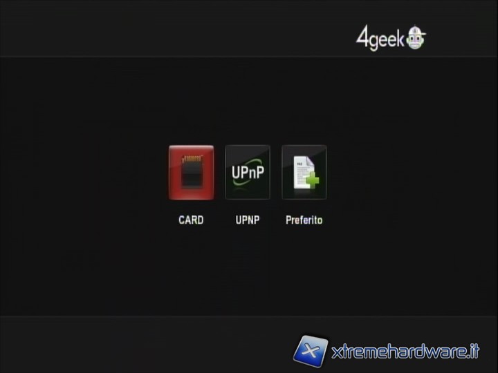 IMPOSTAZIONI: come è facilmente intuibile qui si possono impostare tutte le configurazioni di audio, video, rete, sistema, varie (in quest’ultimo menù si impostano ad esempio la presentazione delle immagini, la musica di sottofondo, o l'anteprima quando si va a sfogliare la libreria film remota). Non è presente una voce 'update', il che non vuol indicare una volontà di 4Geek di lasciare gli utenti a se stessi, ma una semplice opzione inutile per un prodotto che è uscito perfettamente funzionante e senza punti deboli.